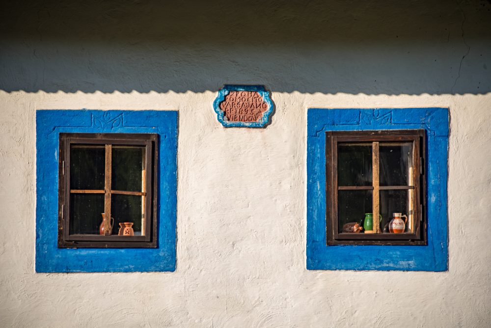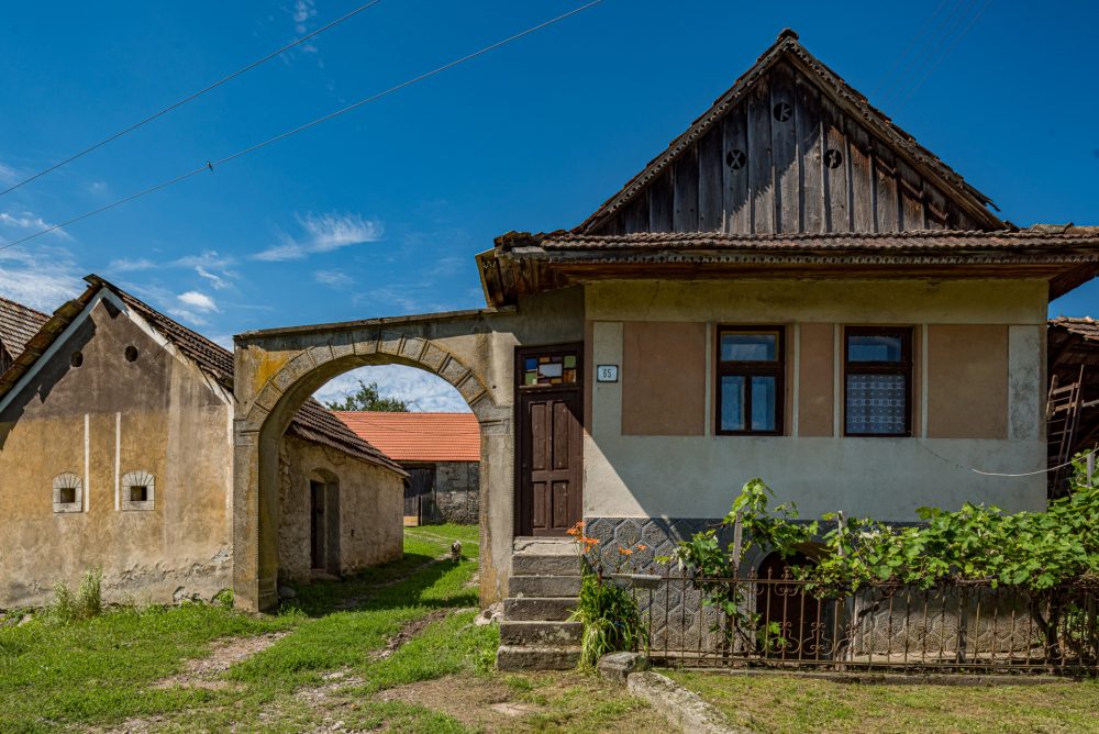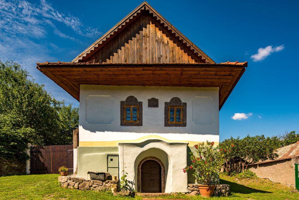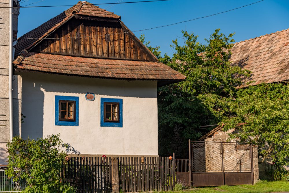 Zachované sú i bohato vyrezávané štíty v podobe rastlinných ornamentov, kde v strede bola vyrezávaná ružica a pod vrchom kvet. Na niektorých existujúcich stavbách sú i kamenné tabuľky s vytesaným dátumom obnovy či výstavby.