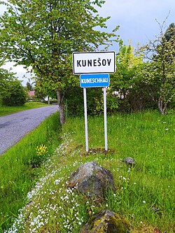 1342 prvá písomná zmienka o obci Kunešov v listine komorského grófa magistra Leopolda, kde je uvedená pod menom villa Sankt Michaelis. Touto listinou kráľ Karol Róbert udelil istému Vernherovi de Potschka dedičné richtárstvo vo vznikajúcej obci. Obyvatelia prišli ako baníci a roľníci pravdepodobne zo Sliezska a z Bavorska.