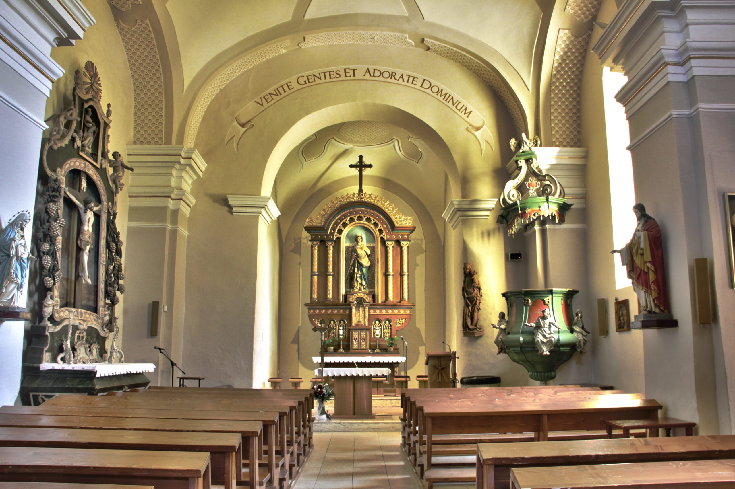 V kostole sa nachádzali do roku 1972 aj vzácne drevené gotické plastiky : sv. Katarína, sv. Dorota, sv. Barbora, sv. Margita zo začiatku 15.storočia. Dva gotické reliéfy - klaňanie troch kráľov a obriezka Pána tiež zo začiatku 15.storočia, boli zrenovované reštaurátorkou Máriou Spoločníkovou a od roku 1956 sa nachádzajú v Slovenskej národnej galérii.