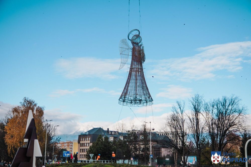 Najväčšia dominanta popradskej vianočnej výzdoby priletela do nášho mesta už po 17. krát tradične vrtuľníkom na najväčší kruhový objazd v meste. Prílet v pondelok 10.1.2025 anjela bol rýchly a bez vzniknutých komplikácií.