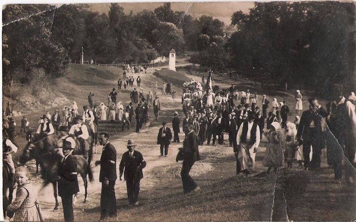 Dožinkový sprievod od Božej muky smerom na vrška r. 1935.
