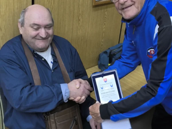 Pri tejto príležitosti bola odovzdaná aj ďakovná plaketa pánovi Vincentovi Stojkovi za jeho celoživotný prínos v rozvoji kolkov pre zrakovo znevýhodnených v Šali.