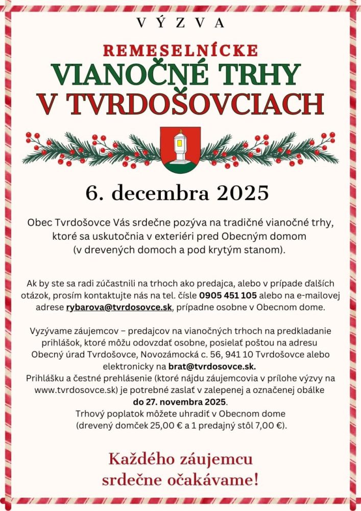 TVRDOŠOVCE: Remeselnícke vianočné trhy